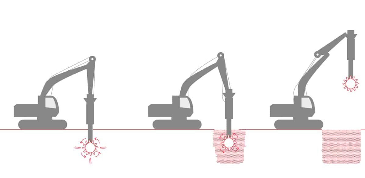 – Kogu nõrga pinnase mahu tugevdamine, kuigi tugevdust on võimalik kujundada nagu DSM-tehnoloogia puhul;